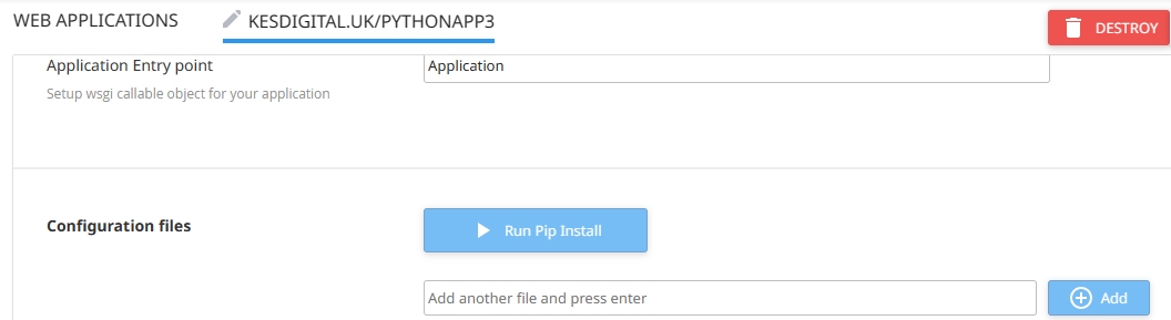 Application URL: Give your application a Name – this is the path for your app (or the whole domain if your making your whole website devoted to your Flask app, you flash thing) Again I’ ve called mine pythonapp3
